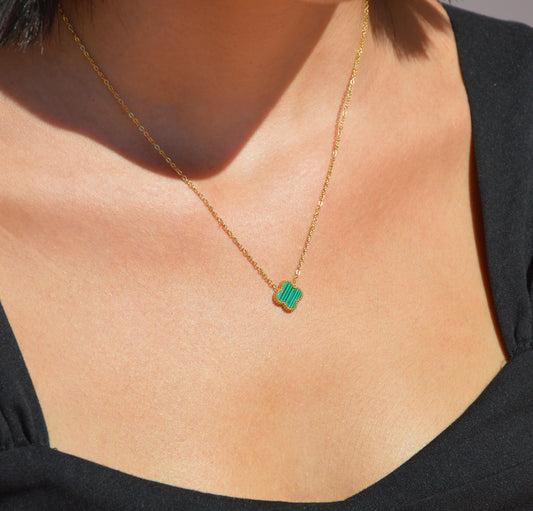 COLLAR TRÉBOL MALAQUITA ORO